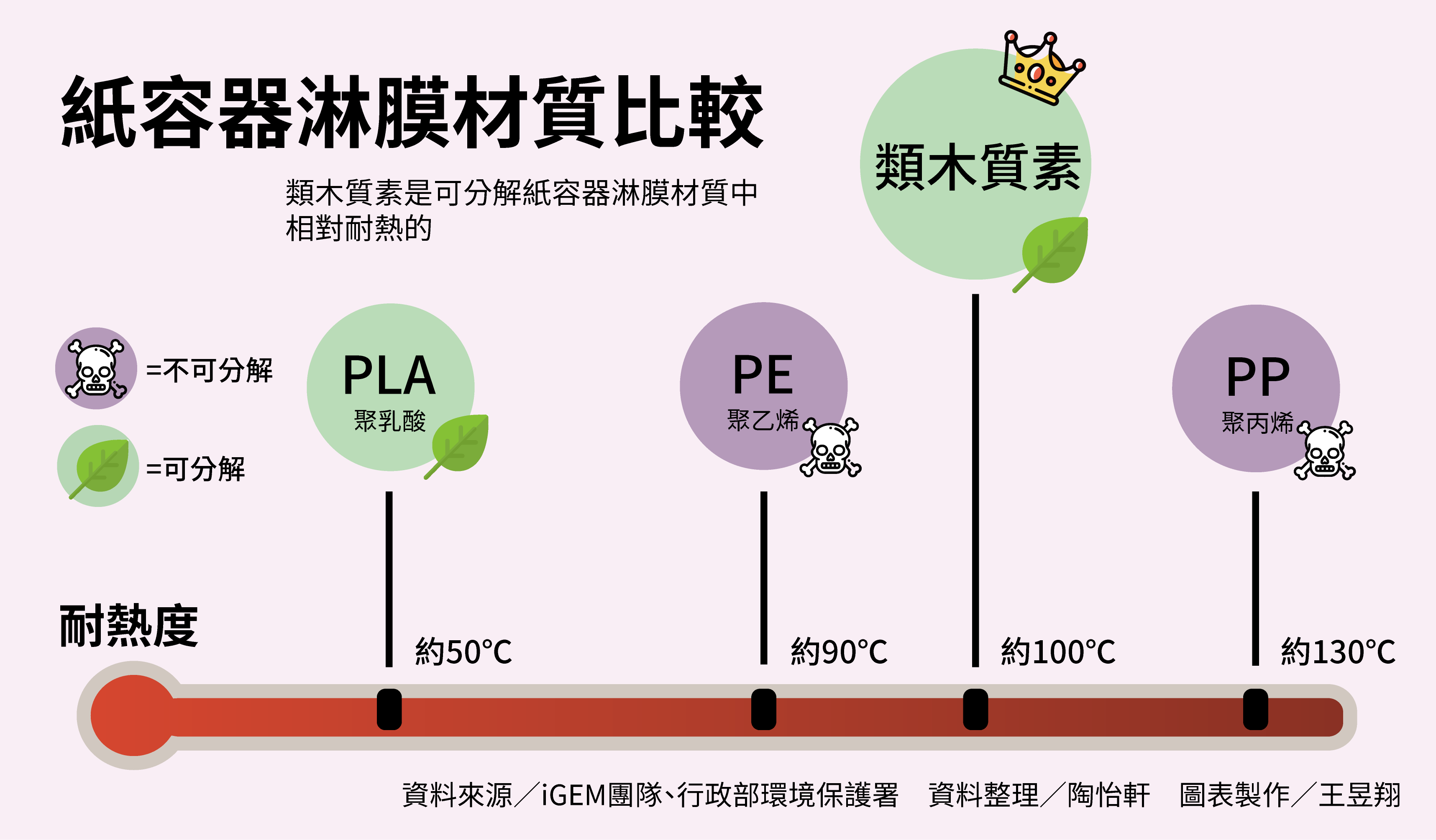另外也特別感謝幫我製作圖表的王昱翔,我當初丟圖表給編輯時,只拉了一個很醜的可分解塑膠比較表格,但王昱翔來跟我討論圖表形式很多次,想要讓圖表呈現更活潑一點。還記得他說:「既然要做,想做的好看一點。」後來成果出來真的讓大家很喜歡,感恩編輯,讚嘆編輯。